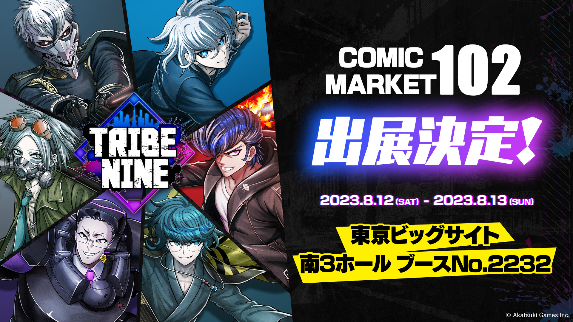 2023年8月12日(土)、13日(日)に開催される『コミックマーケット102』 企業ブース「アカツキゲームス」にて、『トライブナイン』の出展が決定しました!